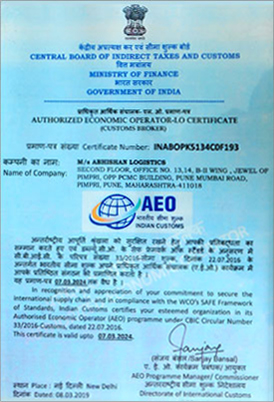 | Authorised Economic Operator- LOGISTICS” from Ministry of Finance, Government of India. AEO-LO |